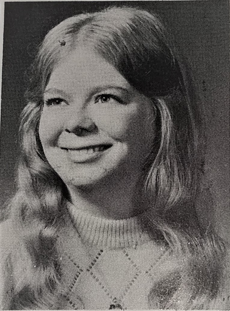 Senior Photo Excalibur Yearbook, page 157 Grand Canyon, Glamour Photo, circa 1983 - 1997 Karen with a favorite car