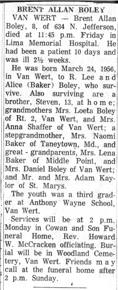 lost a baby daughter, Susan Elaine Boley, about one year after Brent